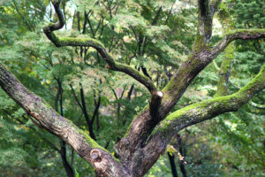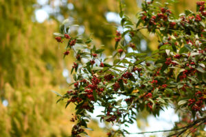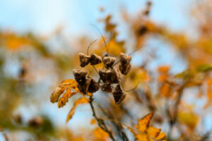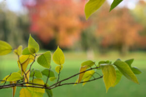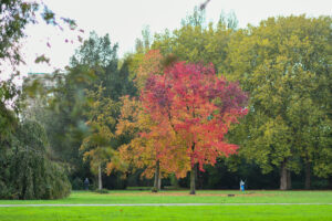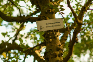 We starten bij de hemelboom, een indrukwekkende maar invasieve soort. Bij de Koreaanse lijsterbes bewonderen we de prachtige herfstkleuren. Mien legt uit: “Doordat de dagen korter worden, neemt de bladgroenproductie af en komen andere kleuren naar voren. Als je in de stad kijkt naar bomen onder lantaarnpalen, dan zie je dat zij hun bladeren langer vasthouden door het kunstlicht.”