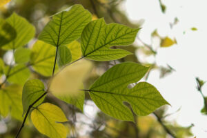 We wandelen verder en stoppen bij de Anna Paulownaboom met hartvormige bladeren. “In China werd deze boom geplant bij de geboorte van een meisje. Het hout werd later gebruikt als bruidsschat,” vertelt Mien. Langs de kastanjelaan staan bijna geen kastanjes meer door de gevolgen van de bloedingsziekte en de mineermot. De kastanjebomen zijn vervangen door de gele pavia – een sterke, stadsvriendelijke boom die veel nectar geeft en goed bestand is tegen luchtvervuiling.