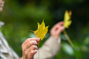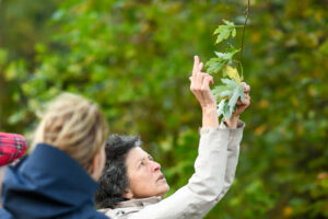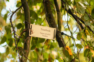 We passeren de Amerikaanse tulpenboom, de amberboom, de indrukwekkende treurbeuk en de purperesdoorn. Mien weet bij elke boom iets bijzonders te vertellen: over de vorm van het blad, de vruchten, zaden, naam en herkomst. “Kijk goed: deze bladeren lijken op elkaar, maar zijn nét anders. Zo kun je de verschillende bomen herkennen.”