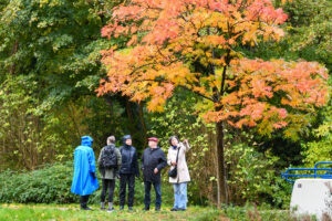 Bij de Japanse peperboom leren we het verschil tussen stekels en doorns – weet jij het? We proeven van de rode besjes: een intense smaakexplosie. We bewonderen de zilveresdoorn, de doodsbeenderenboom en de beuk. De zon breekt door, een regenboog verschijnt en de capuchons kunnen af. Het park is nu nog mooier in het herfstlicht. “Wat ze allemaal weet, ongelooflijk,” hoor ik een deelnemer zeggen. “Dit zou gewoon een betaalde baan moeten zijn!”