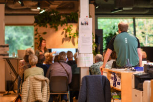 De groendoeners werden welkom geheten door gedeputeerde Rosan Kocken en Elvira Vreeswijk, manager van het Amsterdamse Bos. Zij spraken hun dank en waardering uit voor de gepassioneerde vrijwilligers. Daarna gaf dagvoorzitter Renske Visscher, IVN Regiodirecteur, het woord aan keynotespeaker Marco van Es van Back2nature.