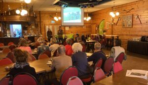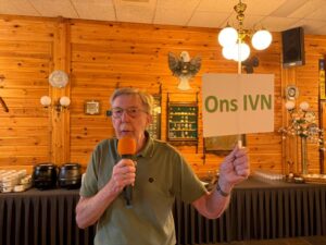 De wolken waren zwaar en grijs en de regen stroomde maar door. Gelukkig lieten de IVN’ers zich er niet door afschrikken (tenslotte slecht weer bestaat niet) en was het binnen warm en gezellig in het sfeervolle Schuttershoes. Na een kop koffie met wat lekkers werd de dag gestart met een welkomstwoord van IVN Haaksbergen en een presentatie over het werk van IVN Overijssel (de beroepsorganisatie). De successen die alle IVN afdelingen in Overijssel tezamen hebben bereikt in 2025, bleven niet onopgemerkt. Deze aantallen maakten grote indruk. “We zijn trots en dankbaar voor alle tomeloze inzet en passie.”