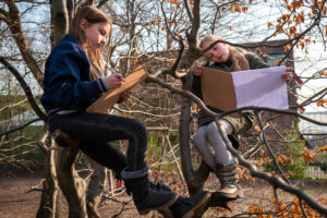 Een Groen Schoolplein is méér dan een paar extra planten. Het is een plek waar natuur mag ontwikkelen en kinderen fijn kunnen spelen en zichzelf kunnen zijn. Sanne Moes (projectleider bij IVN Overijssel) vertelt: ‘Je ziet dat kinderen op een groen schoolplein op veel meer manieren kunnen spelen. Kinderen die hun energie kwijt moeten kunnen lekker klimmen en klauteren. Kinderen die rust zoeken kunnen zich juist terugtrekken in een wilgenhut. Er staat niks vast op een groen plein. Dit zorgt er ook voor dat kinderen diverser bewegen, creatiever spelen én het is goed voor de taalontwikkeling.’