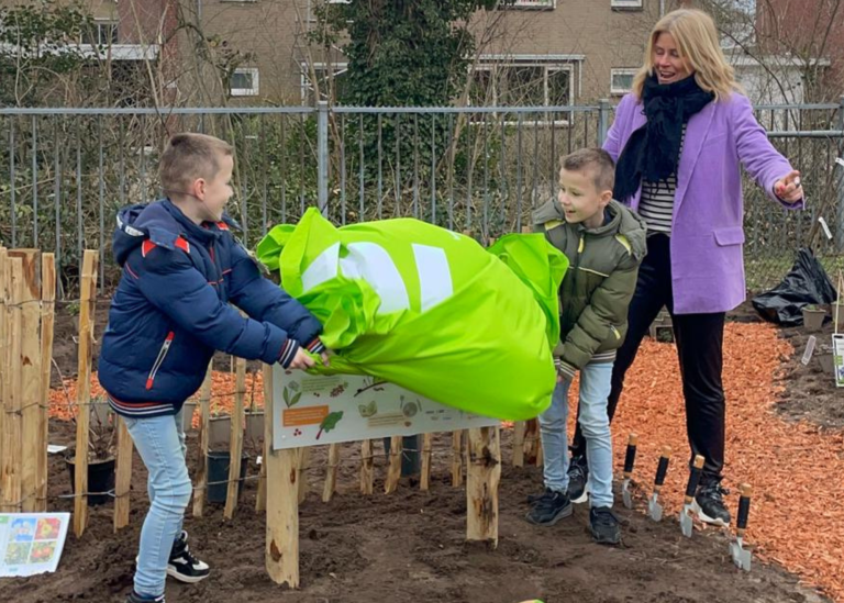 Kindcentrum Heemse in Hardenberg heeft sinds dinsdag 7 maart een Voedselbosje. Kinderen van de BSO hebben samen met IVN Natuureducatie het eetbare bosje op hun plein geplant. Directeur van de kinderopvang Fera Harsevoort opende samen met twee kinderen het Voedselbosje. Zowel de kinderen als de directeur zijn blij met dit groene initiatief in Hardenberg.