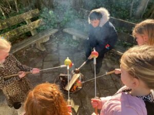 De dag werd compleet gemaakt door samen met de kinderen appeltjes te roosteren. IVN verzorgt gastlessen en levert educatiemateriaal, waarmee de school zelf aan de slag gaat. Het Nationaal Park speelt een belangrijke rol in het vergroenen van de leefomgeving en verkleinen van de afstand tot de natuur. Daarvan zijn de voedselbosjes op scholen een goed voorbeeld.
