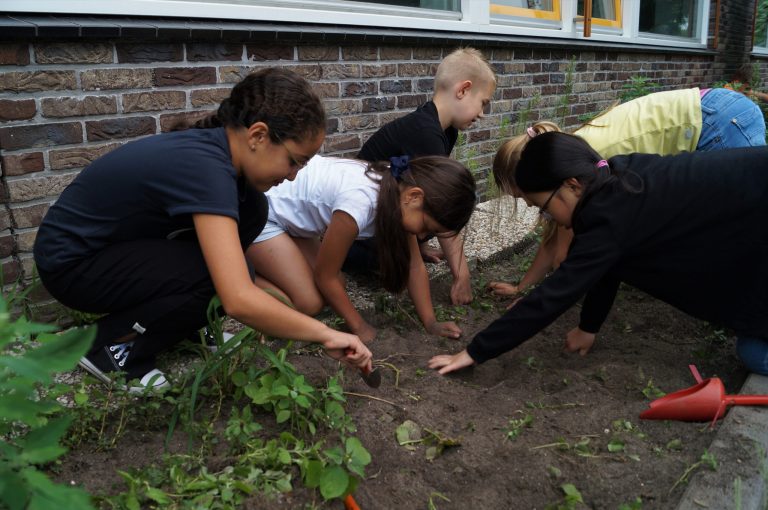 Alle vrijwilligers vinden het geweldig om samen met de kinderen in de tuin aan de slag te zijn. Sommige kinderen vinden het aan het begin van het jaar eng om met planten om te gaan. Als je ze vraagt waarom dat is, dan krijg je het antwoord: “Ze leven, die kan ik toch niet zomaar uit de grond halen!” Andere kinderen worden juist heel rustig van het werken met de handen in de aarde. Ook het maken van bloemenbommetjes is een geliefde bezigheid. Na die les zijn er heel wat van verspreid in de wijk. Ieder kind krijgt door de verschillende lessen en de hulp van vrijwilligers en klassenouders een persoonlijke ervaring die ze voor altijd met zich meedragen
