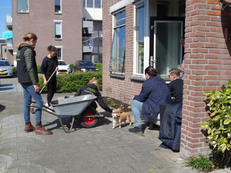 Daarnaast werkten we samen met tuinontwerpster Hanneke van Dijk (Botanique) en konden we rekenen op helpende handen vanuit het Biodiversiteitsteam Woerden van de lokale IVN- en de KNNV-afdeling. Zij hebben de bewoners geholpen bij het tegelwippen, het aanbrengen van biologische grond en bij het samenstellen van de plantenbakken voor op de balkons. Dat werd enorm gewaardeerd en bleek niet alleen het recept voor vergroenen, maar ook voor een gezellige ochtend waarop buren elkaar ontmoetten tussen het planten door.