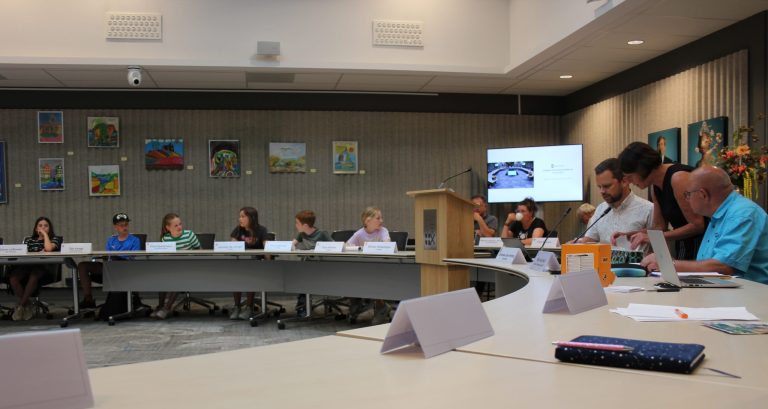 Eerst is het zaak dat een aantal jeugdgemeenteraadsleden hun ontwerp voor het skatepark toelichten en vragen van hun collega’s beantwoorden. Uit iedereens ontwerpen zijn er drie uitgekozen om het verder over te hebben. Opbouwend kritisch als de jonge raadsleden zijn na al die lessen in vergaderen en debatteren, levert dat gelijk de eerste vraag op: Hoe zijn deze drie eigenlijk uitgekozen? Daar kan de voorzitter transparant over zijn; twee ambtenaren hebben ze uitgekozen op basis van helderheid, uitvoerbaarheid en in hoeverre het idee al goed uitgewerkt was.