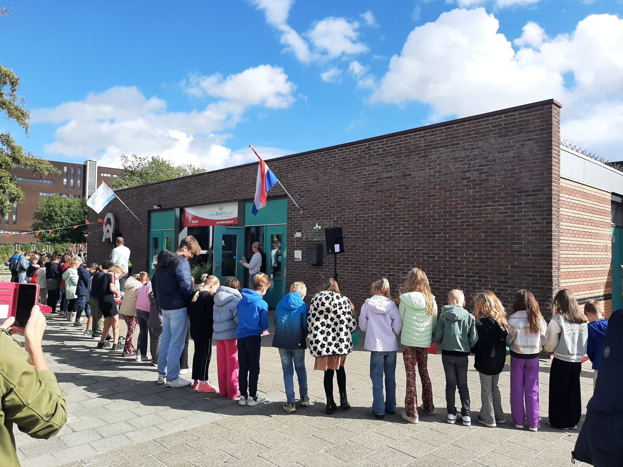 De Brede School ‘de Symfonie’ in Goes opende 26 september hun nieuwe groene plein. In een lange slinger stonden de leerlingen met een vlaggenlijn in hun handen te wachten op het signaal. Na het aftellen was het zover en mochten ze allemaal de slinger doorknippen om hun vergroende buitenruimte te vieren. Daarna was het feest met o.a. het maken van insectenhotels, een workshop van een imker en freerunning.