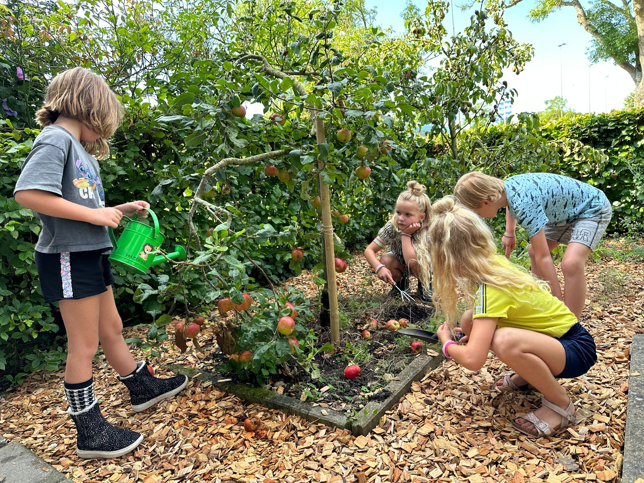 De Hoftuin van basisschool de Palmenhof is een groene oase voor voedseleducatie