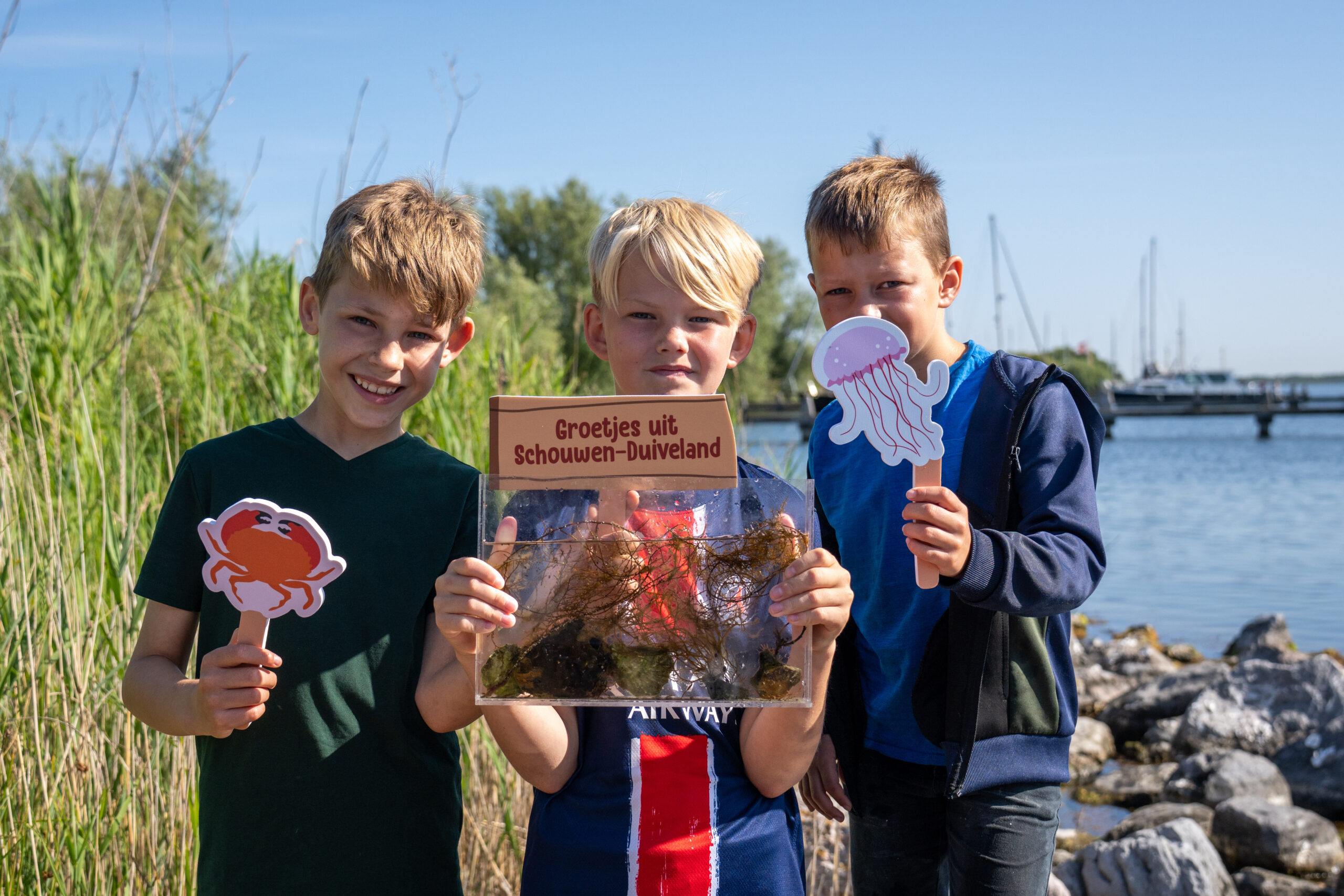 Afgelopen vrijdag, tijdens de buitenlesdag aan de Grevelingen Schouwen-Duiveland, ontdekten leerlingen van vier basisscholen de onderwaterwereld aan hun voeten. De kinderen waren de auto nog niet uit of ze stonden al tot hun enkels (of verder!) in het water.