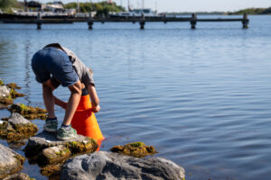Met onderwaterkijkers, schepnetjes, verrekijkers en glazen bakken leerden ze over wieren, kwallen, krabben en andere waterdiertjes. Bij één van de posten haalde een vrijwilliger van NME een grote krab uit het schepnet, draaide hem om en legde uit: “Aan de vorm van het buikschild kun je zien of het een mannetje of vrouwtje is.” Even later durfden de meeste kinderen het zelf ook aan. Daarna renden de krabben snel zijwaarts terug het water in.