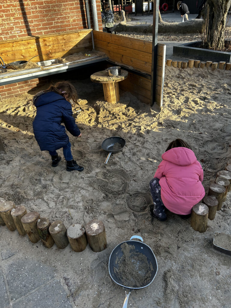 Het plein heeft een hele metamorfose ondergaan. Waar voorheen tegels lagen, zijn nu verschillende plantenbedden aangelegd, hutjes van wilgentakken gemaakt en extra bomen geplant. Om de buitenkeuken is een zandbak gemaakt, waar nu de heerlijkste zandtaartjes en moddersoep gemaakt kunnen worden. Ook is er een mooi buitenlokaal gebouwd waar de school het hele jaar door gebruik van kan maken.