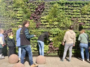 De eerste stop bij de safari was de Lonnenboot. Een rondje op het plein gaf mooie voorbeelden van simpele aanpassingen die veel extra speelplezier opleveren. Wilgentunnels en bosjes om doorheen te rennen, losse takken die de creativiteit in spel van de kinderen stimuleren en bankjes en muurtjes van oude tegels om overheen te balanceren. Anouk Otto, educatiespecialist bij IVN, gaf extra tips. ‘Hoogteverschil in het ontwerp van je groene plein geeft veel mogelijkheden om te gebruiken in de buitenlessen.’