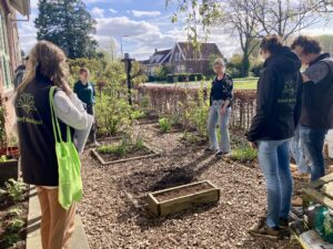 De tweede stop was de Palmenhof in Middelburg. Deze school laat zien dat er met een relatief klein plein veel te bereiken is. Moestuincoach Mirjam Geldof vertelt over hun aanpak van tuin tot tafel: ‘In bakken hebben we een kruidentuin aangelegd waar we kruidenboter van maken tijdens buitenlessen. En in onze moestuin groeien we de groenten waar we soep van koken’. Een mooi buitenlokaal onder de grote boom op het plein vormt de centrale plek voor de buitenlessen.