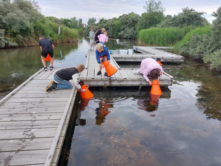 Het bijzondere gebied leent zich goed voor educatie voor kinderen vertelt Melanie van Zweeden, Boswachter Publiek bij Staatsbosbeheer. ‘Het is een aantal jaren geleden aangelegd en biedt een plek voor planten en dieren om zich te ontwikkelen.’ Dit werpt inmiddels ook zijn vruchten af. ‘We ontdekten tijdens de excursie met de kinderen o.a. een visdief, een zeester, kwallen en verschillende sponzen en wieren. Ook was er een leerling die twee ijsvogels wist aan te wijzen.’