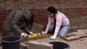 - Tegels netjes weer terugzetten als omheining van de geveltuin