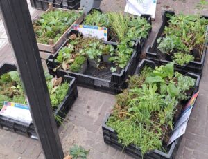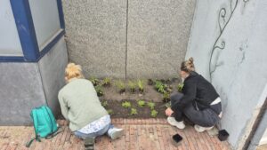 Vanaf 10 uur waren bewoners welkom voor een kopje koffie en konden we aan de slag met het verdelen van plantjes en het vergroenen van de straat. Bij elk aangemeld adres waren er voorafgaand al tegels verwijderd en potgrond toegevoegd. Ieder tuintje kreeg een eigen beplantingsplan vol inheemse planten die goed zijn voor de insecten en de straat opfleuren. Wethouder Rens de Ron was aanwezig om de eerste plantjes in de grond te zetten en de dag af te trappen! Na een paar uur waren we klaar en hebben we gezellig samen geluncht met de organisatoren en blije eigenaren van de geveltuintjes.