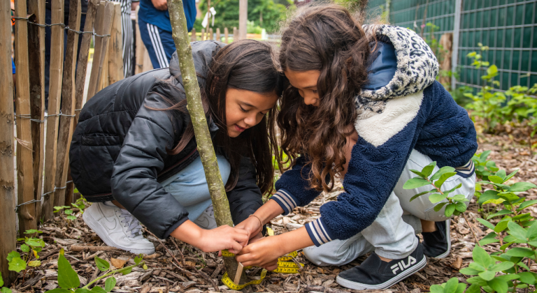 Tijdens de plantdagen in november en het voorjaar van 2023 gaan de kinderen de jonge planten in de grond zetten. Van appel- en amandelboom tot lekkere bladgewassen als rabarber en brave hendrik.