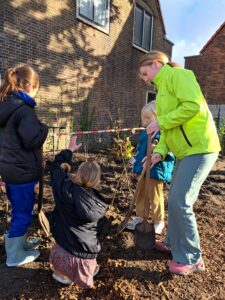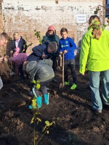 Onder begeleiding van Hoek Hoveniers en IVN Natuureducatie zetten de leerlingen zo’n 600 boompjes van 20 verschillende soorten inheemse bomen en struiken in de aarde. Dicht op elkaar, want dat hoort bij de Tiny Forest-methode, dat ervoor zorgt dat de bomen snel groeien en er over een paar jaar een echt klein bosje staat. Tijdens de aanleg spatte het enthousiasme ervan af. Veel kinderen plantten voor het eerst in hun leven een boom. ‘Ik heb echt de allereerste boom van dit bos geplant!’ roept een van de kinderen enthousiast tegen zijn vader na schooltijd. Een meisje vertelt direct na het planten hoe tof ze het vindt om nu een perenboompje te kunnen herkennen. ‘Dit is echt een toffe peer’ roept ze met een grote glimlach.